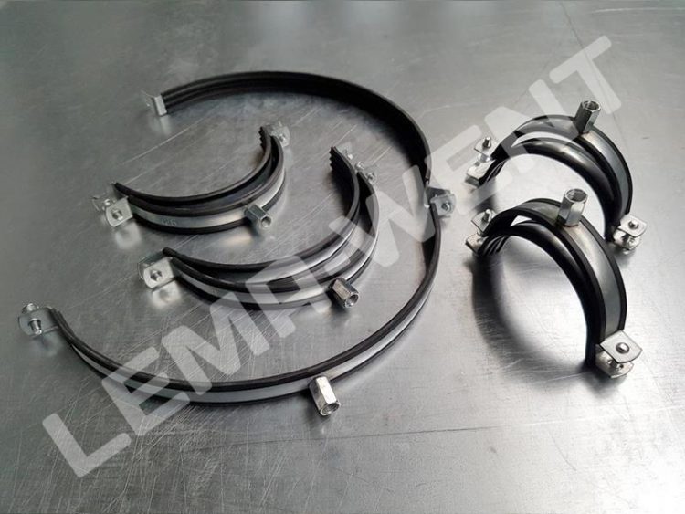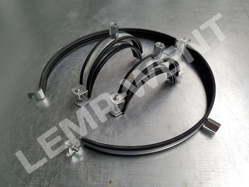 Obejmy montażowe przeznaczone do montażu i podwieszania rur w instalacjach wentylacyjnych i odpylających. Wykonane z dwóch części połączonych ze sobą za pomocą śrub stalowych, dodatkowo wyposażone w amortyzator z gumy EPDM.