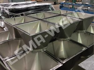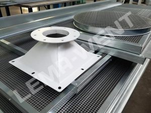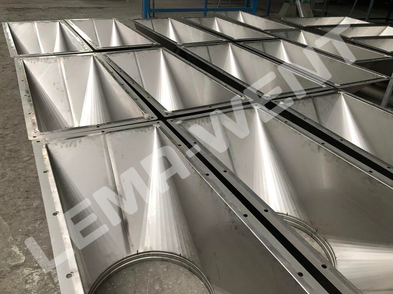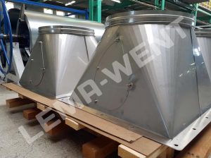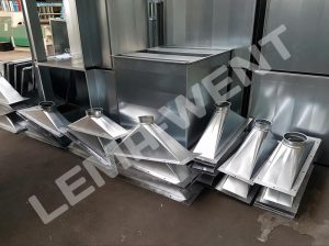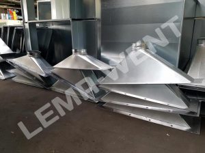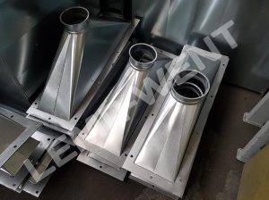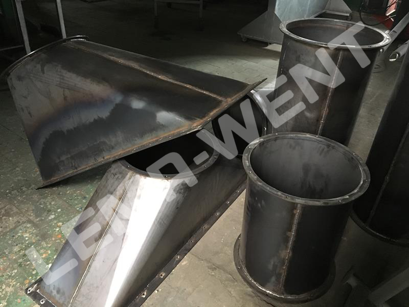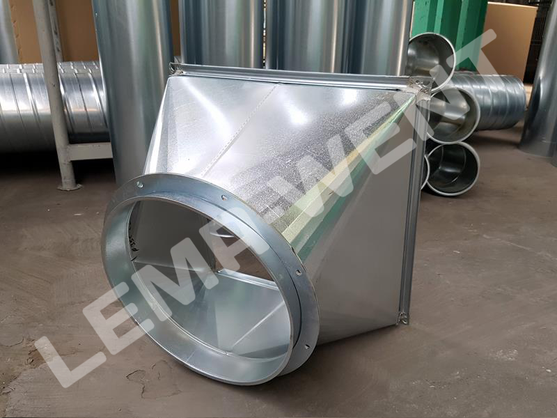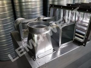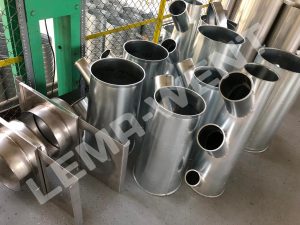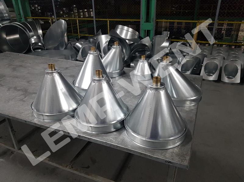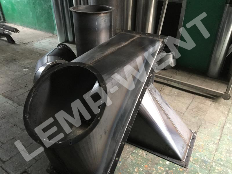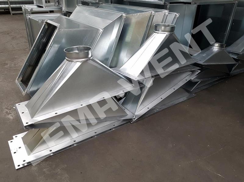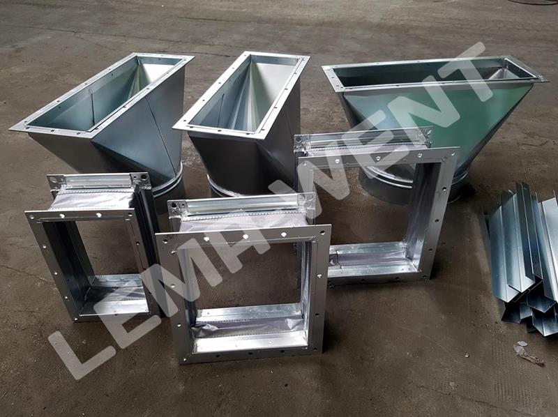 Standardowo produkowane z blachy ocynkowanej w systemie rur i kształtek zakończonych wywiniętymi krawędziami, łączonych za pomocą obejm zaciskowych i/lub kołnierzy skręcanych (inne metody łączenia na indywidualne zamówienie). W przypadku dyfuzorów przyłącze prostokątne najczęściej wykonywane na ramce wentylacyjnej lub z płaskownika/kątownika.