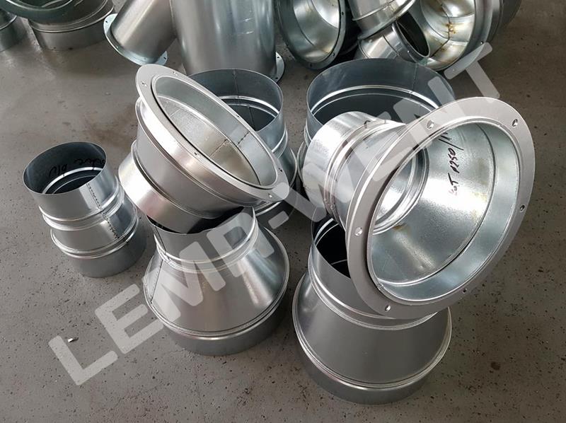 | Grubości blach: | Kształtki z bl. ocynkowanej – standardowe grubości [mm] w zależności od średnicy: 0,8/1,0/1,25/1,5 Kształtki z bl. nierdzewnej i kwasoodpornej – standardowe grubości [mm] w zależności od średnicy: 0,8/1,0/1,25/1,5 Kształtki z bl. czarnej – standardowe grubości [mm] w zależności od średnicy: 2,0/3,0 |