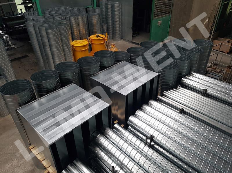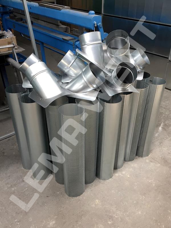 Elementy produkowane w systemie rur zwijanych typu Spiro lub rur gładkich typu BI oraz kształtek łączonych na wsuw z blachy ocynkowanej, nierdzewnej i kwasoodpornej.