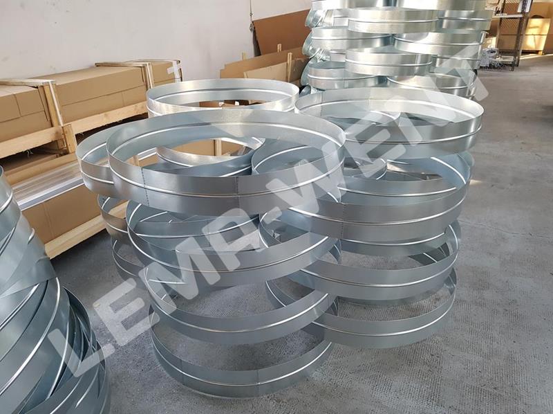 | Metoda wykonania: | Rury zwijane typ Spiro – zwijane spiralnie Rury gładkie typ BI – felcowane wzdłużnie, spawane wzdłużnie Kształtki – łączenie blach zamkiem blacharskim, na zakładkę, przez zgrzewanie, przez nitowanie. |