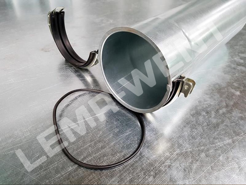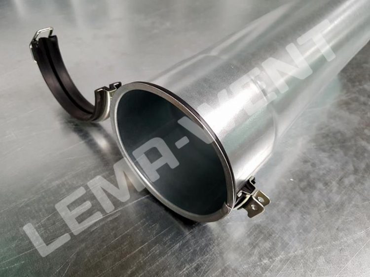 | Typy połączeń: | Wywijane – elementy o krawędziach z wywinięciem. Kielichowe – elementy z jednej strony zakończone kielichem z krawędzią z wywinięciem, z drugiej strony bose (łączenie na wsuw + dodatkowe uszczelnienie z jednej strony obejmą zaciskową i uszczelką o-ring). |