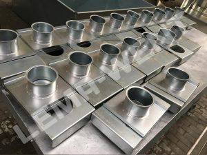 | Grubości blach: | Kształtki z bl. ocynkowanej – standardowe grubości [mm] w zależności od średnicy: 0,8/1,0/1,25/1,5 Kształtki z bl. nierdzewnej i kwasoodpornej – standardowe grubości [mm] w zależności od średnicy: 0,8/1,0/1,25/1,5 Kształtki z bl. czarnej – standardowe grubości [mm] w zależności od średnicy: 2,0/3,0 |